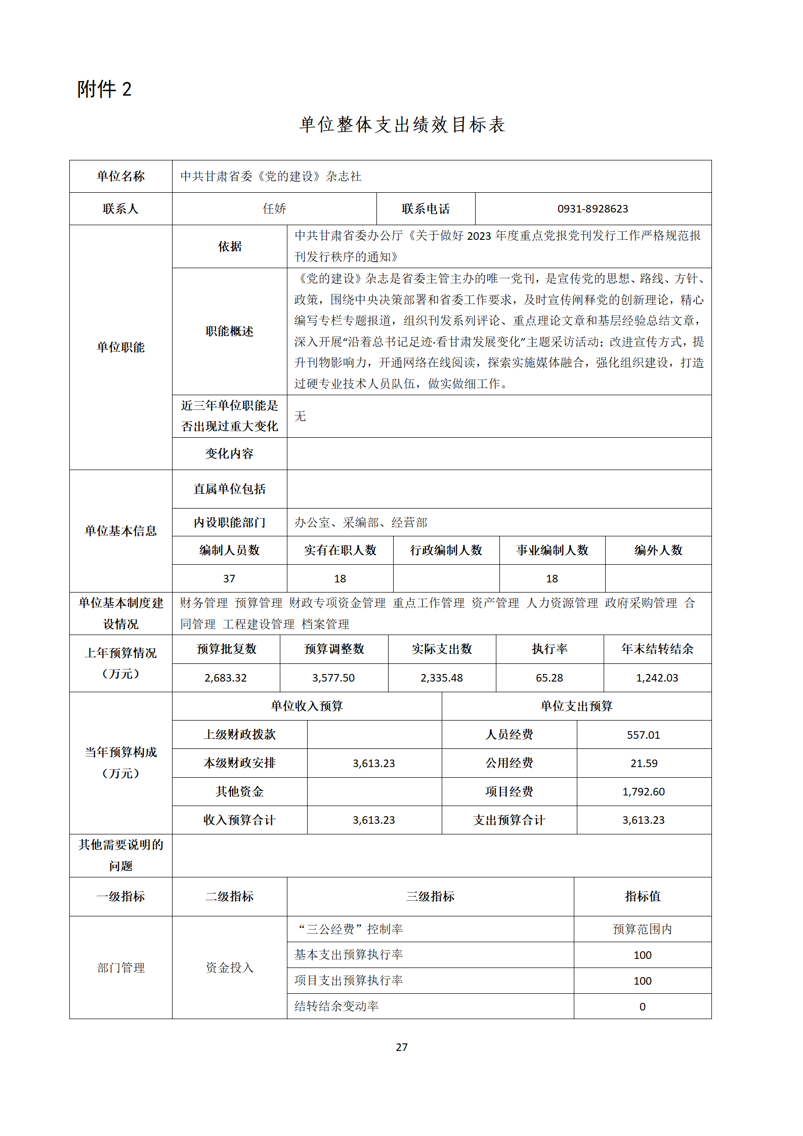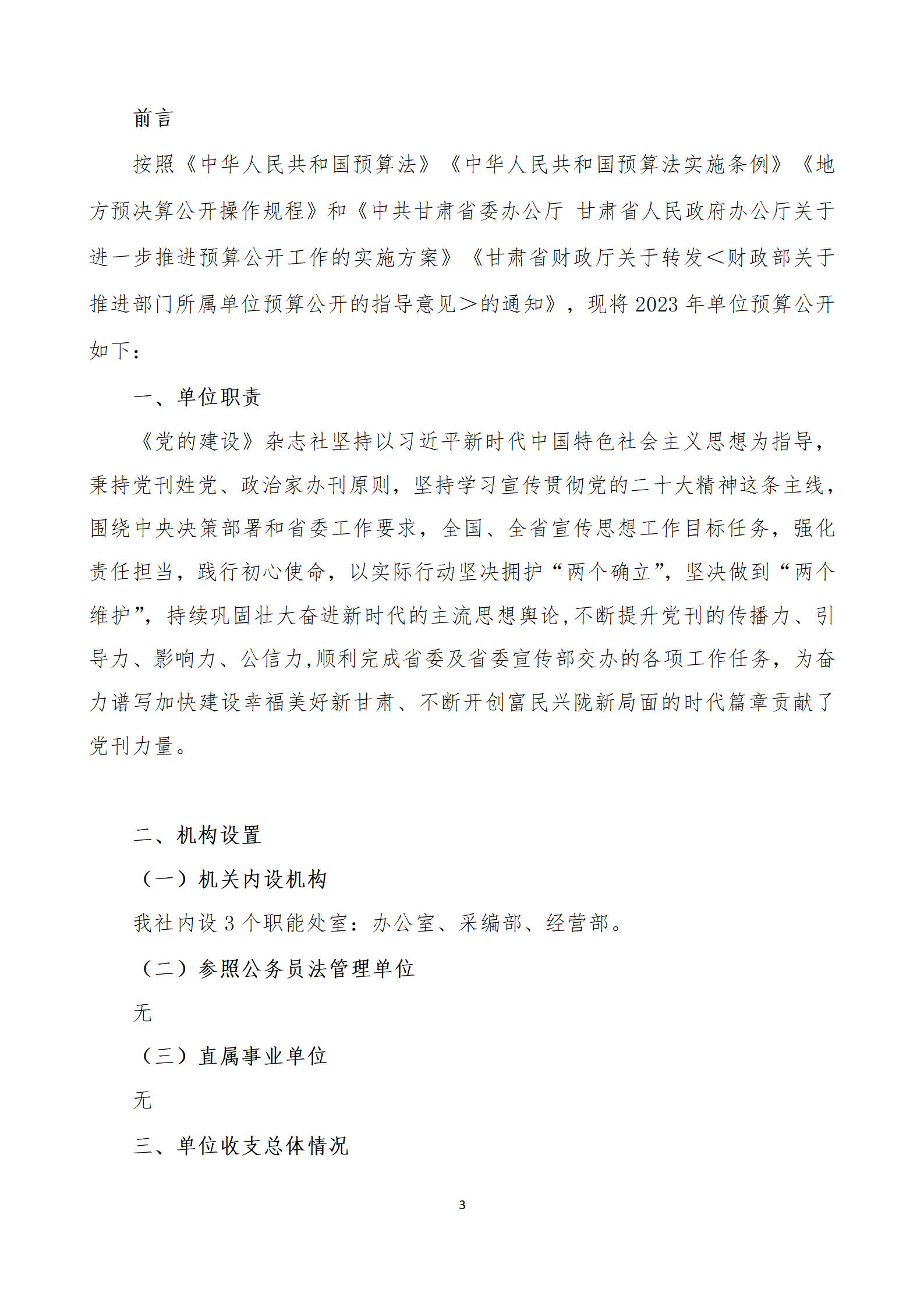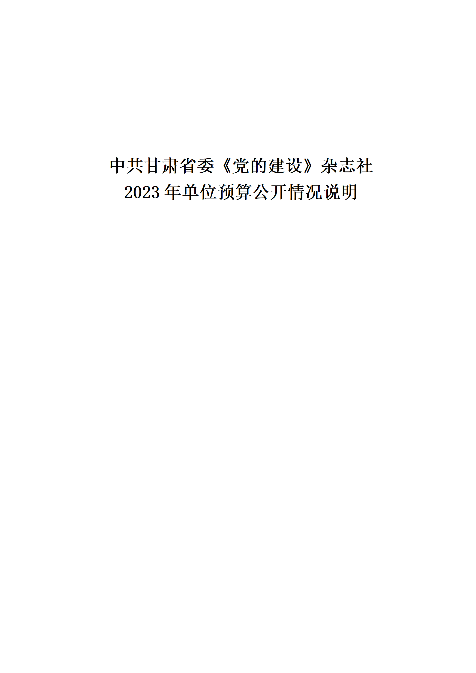 中共甘肃省委《党的建设》杂志社2023年单位预算公开情况说明